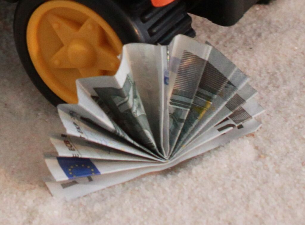 Den Geldschein von der schmalen Seite 0,5 - 1cm breit umknicken