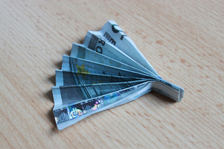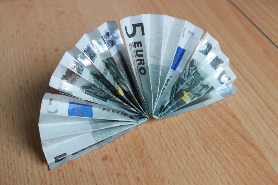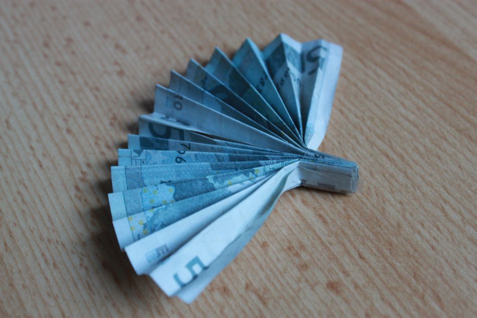 Zuerst den Geldschein ein bisschen glatt streichen und vor sich hinlegen.