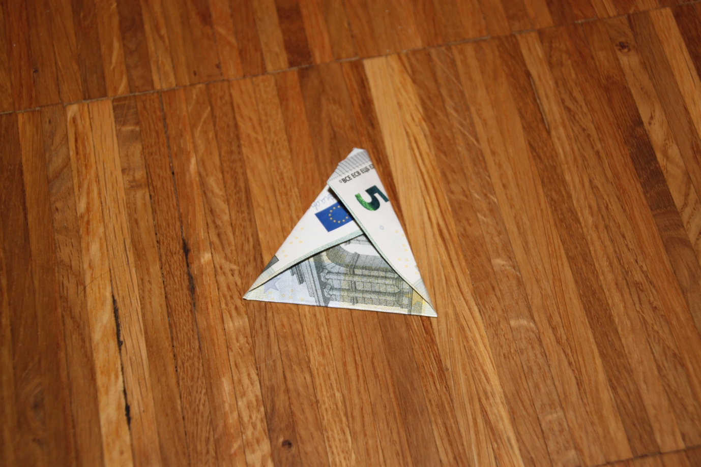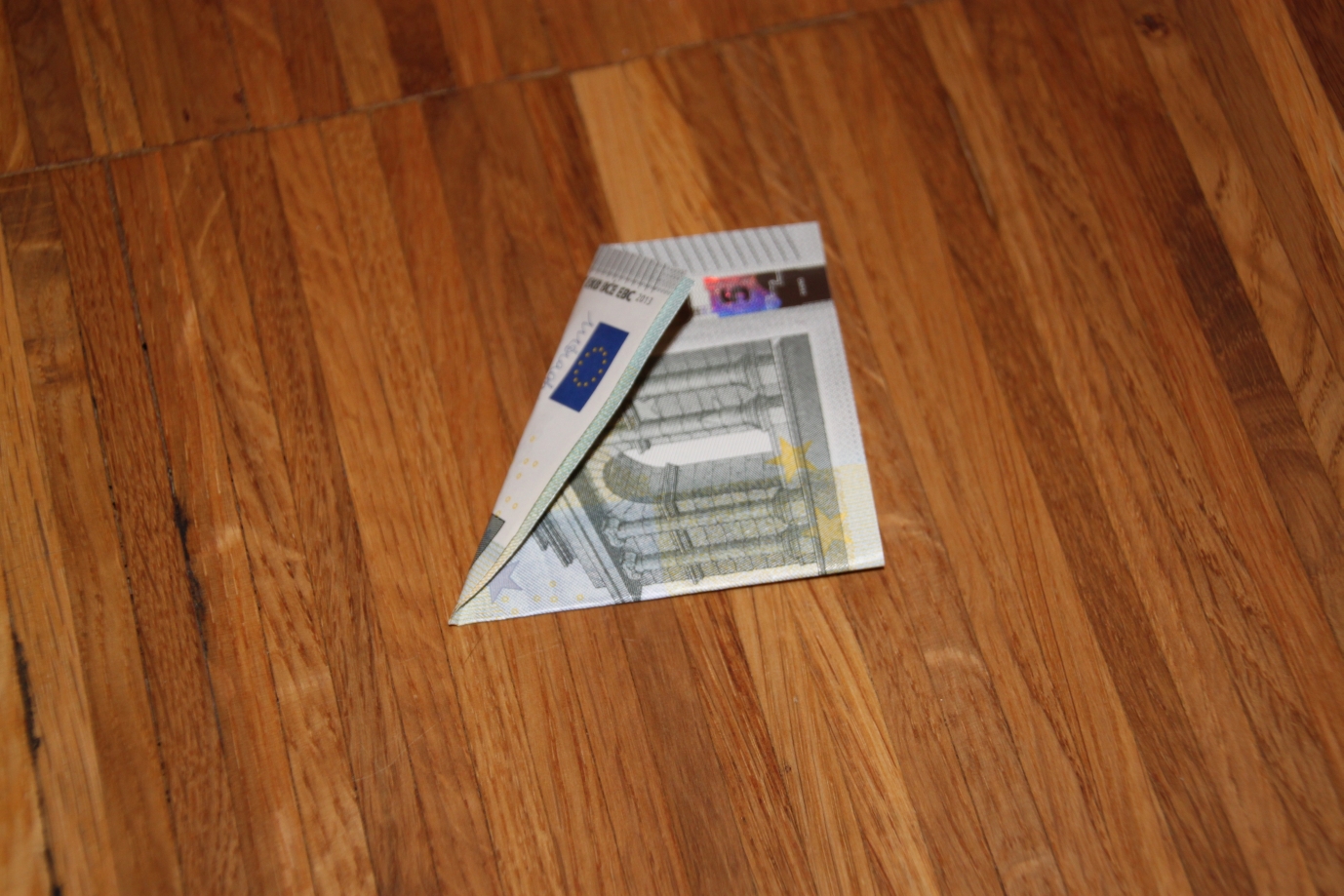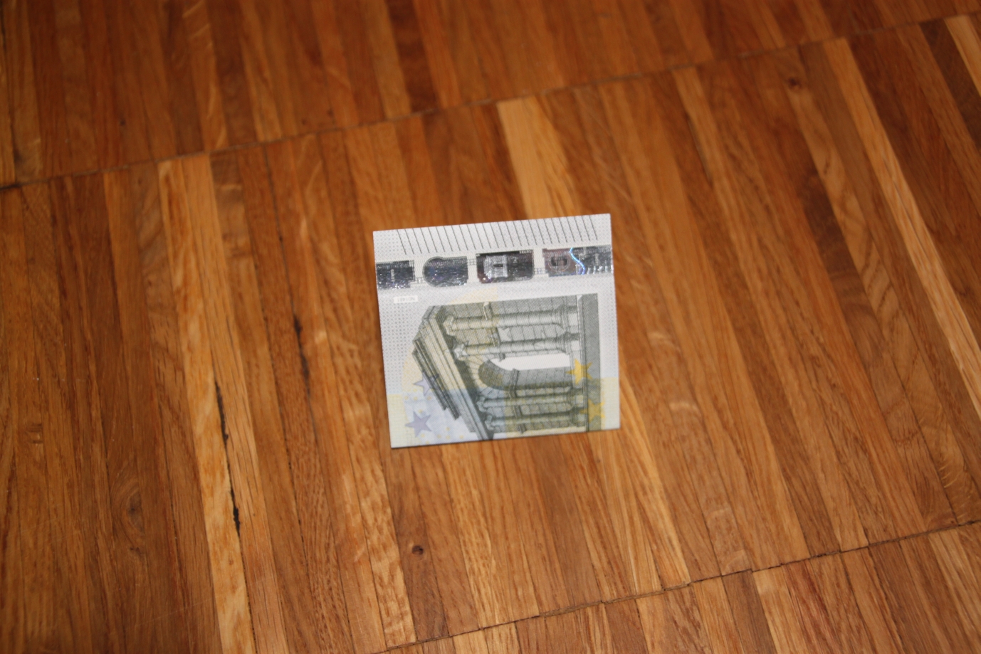 Geldschein hochkant vor sich hinlegen (also die kurze Seite oben/unten)