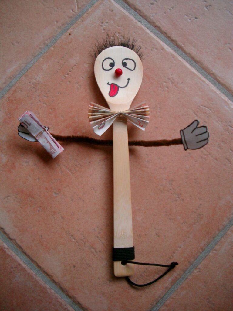 Der Löffelkerl ist eine witzige und schnelle DIY-Geldgeschenkidee: Aus einem einfachen Kochlöffel wird eine lustige Figur mit Gesicht, Armen, Haaren und einer Geld-„Fliege“. So wird aus einem gewöhnlichen Löffel ein liebevoll gestaltetes Geldgeschenk für Geburtstage und andere Anlässe.